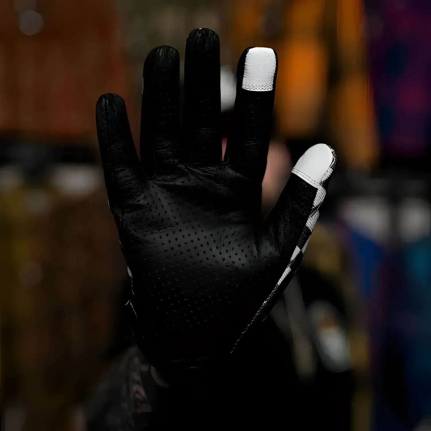 Featuring abrasion-resistant panels and premium goat leather palms, every detail is optimized for comfort and performance on and off the road. Highlights include breathable one-piece goat aniline leather palms, easy slip-on design without straps, touchscreen-compatible fingertips, reinforced seams with padded grip zones, and bold, durable back panels.