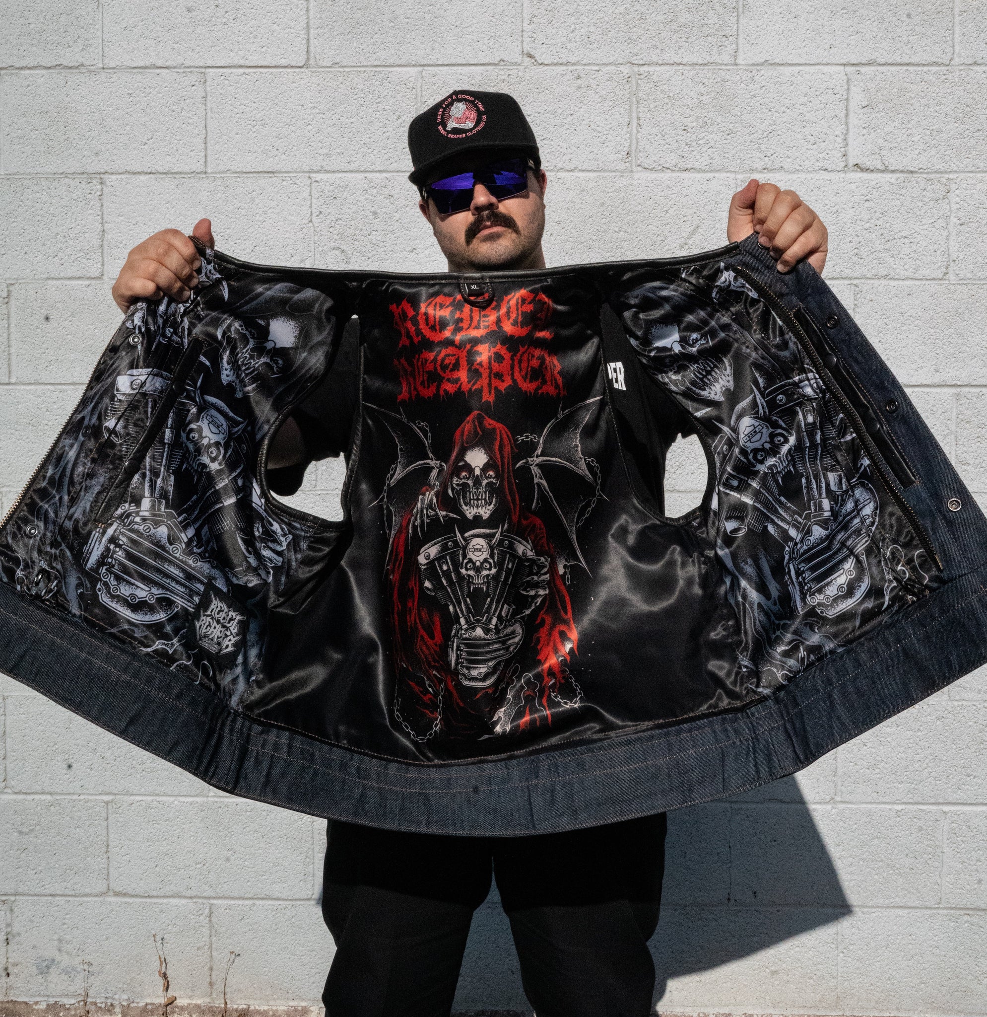 - Custom Liner Artwork: Features a unique reaper holding a Harley Motor design inside the vest with monochrome side panels.